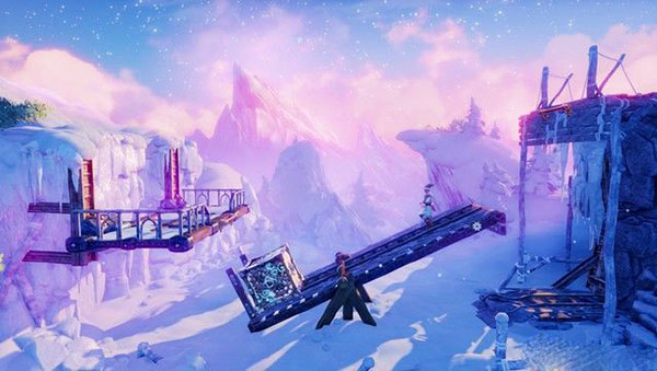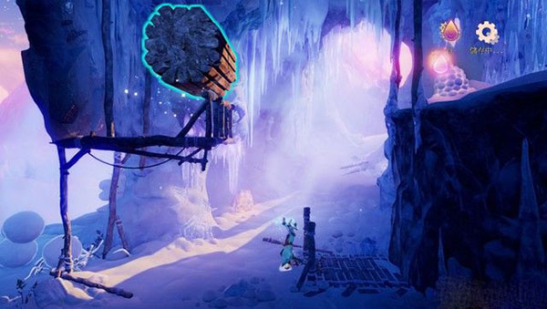 在上面的收集品难点的右侧是一个被冻结的桥,召唤大箱子将桥上的冰清理掉之后,