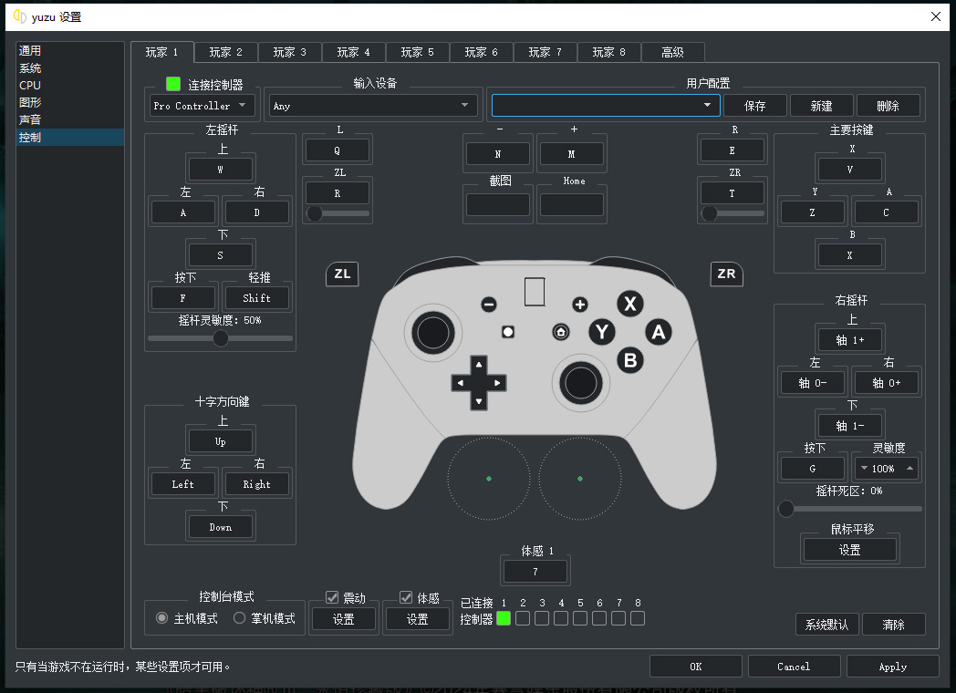 5、弹出了模拟控制界面,玩家可以自行设定操作按键,默认主要按键如下: