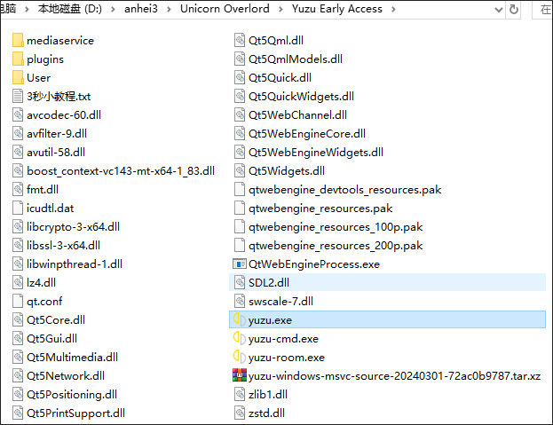 2、再运行目录下 Yuzu Early Access文件夹下的yuzu.exe文件;