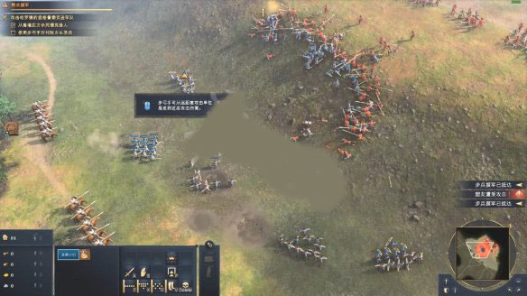 发现无法突破盾墙后,根据提示将前线的所有部队拉下来,佯装回撤。等待敌人冲出来时,再包围将他们消灭。