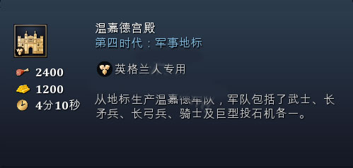 从地标生产温嘉德军队,军队包括了武士、长矛兵、长弓兵、骑士及巨型投石机各一。