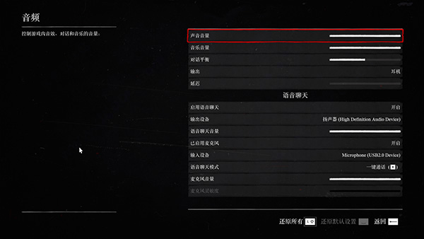 6、我们还可以设置声音音量、音乐音量、对话平衡的音频大小,甚至还能设置输出的设备;