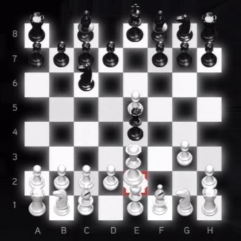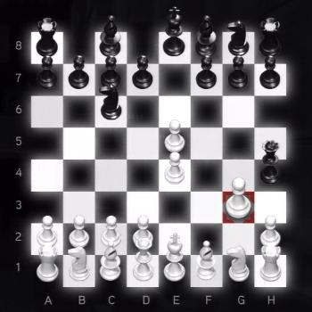 谜题第二部分的国际象棋,提示是:「从君主的十字架前离开,人民向前迈进了两步。」