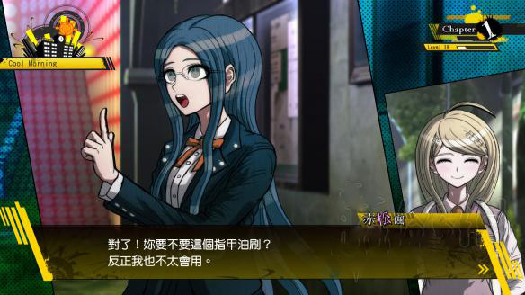 重要环节“学级裁判”中将会加入一个团体战的系统“混乱议论”,根据参加者意见的分歧会分为两个阵营。双方以对峙的方式开始辩论,角色依次发言,玩家需要做的就是看穿对面的话题,选择相应的关键词。