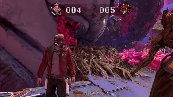 在前方由于飞船残骸不稳定,导致格鲁特与我们分开,于是三人兵分两路准备在前方会合。