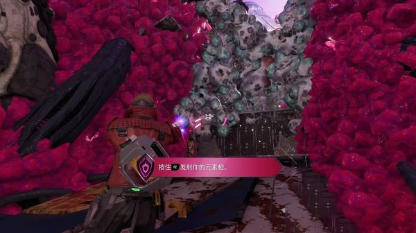 在高处平台我们可以找到一个电池,使用元素枪破坏平台下方的障碍物后电池就会掉落至地面。