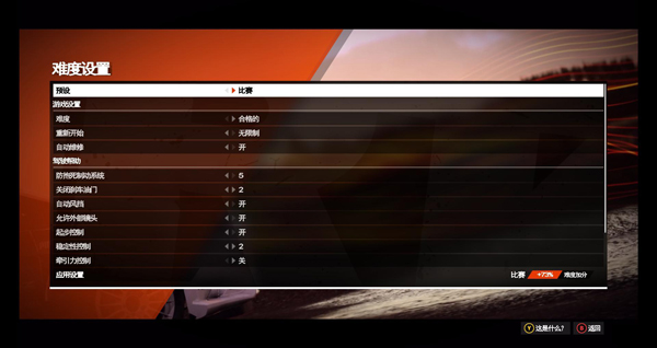 4、以及设置难度,驾驶帮助等;