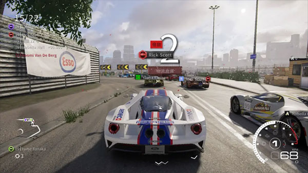 完整HUD,这个对游戏没有过多影响,只是删减了屏幕上的圈数、排位提醒,玩家可以按动十字键从车队通信中取得了解(当然,玩家的英语听力能力也得有一定水平),清除掉这些碍眼的一大堆数字,对行车视野也是一种扩张。
