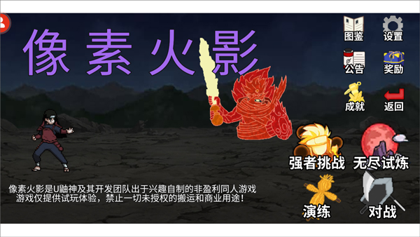 3、采用2D像素格斗形式,呈现火影忍者的经典场景和角色。