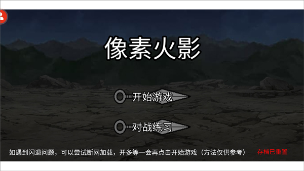 1、打开像素火影,进入游戏首页,点击开始游戏;