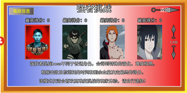 3、如强者挑战,选择比想要挑战的强敌,并选择好难度,点击开始/1