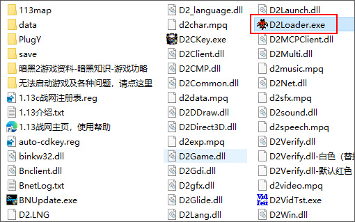 1、下载解压,得到暗黑破坏神2毁灭之王v1.13中文版,注意:游戏目录最好是英文路径;