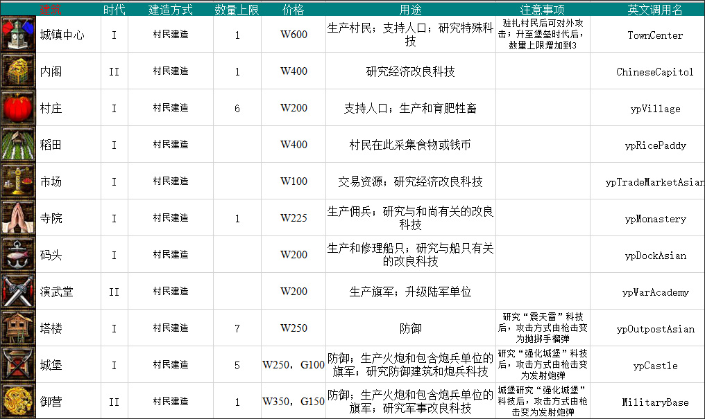 5、游戏包中含有帝国时代3天明建筑、单位、科技一览.xls,请自行查看。