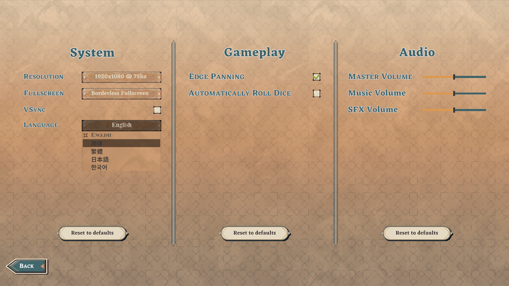 对了,设置中文很简单,在选项里选简体就行了。新手的话按照教程一步步来就能上手。整体来说,这种策略和随机性结合的游戏机制让我觉得既考验脑力又充满乐趣,特别是每次通过骰子带来的不确定性,总能让人保持紧张感。如果你喜欢策略游戏,这款绝对值得一试!