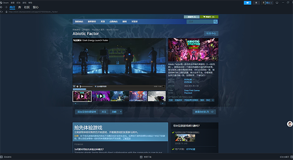 Abiotic Factor 为多人开放世界生存制作类游戏带来了90年代的科幻风格和丰富的角色进程。最多6名玩家可以选择他们的博士、培养他们的科学家、配齐装备并探索一个巨大的地下建筑群,里面充满了超自然的神器、跨维度的敌人和扭曲的科学实验。
