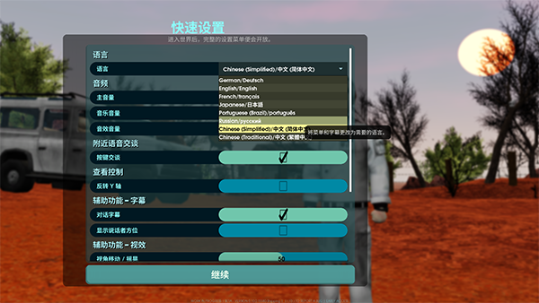 1、进入游戏后我们先将语言调整为中文,点击第一行语言,选择简体中文。