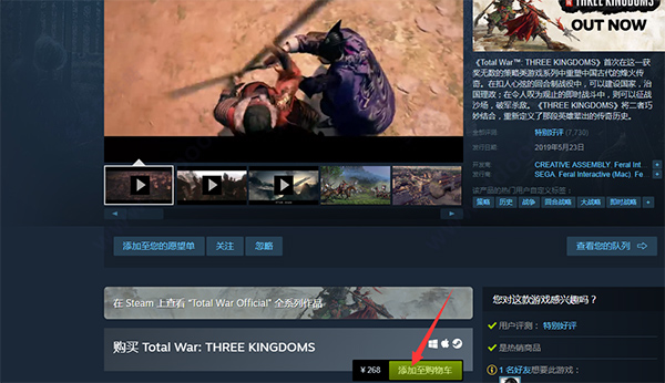 3、这里会看到该游戏的全部介绍,我们点击“添加至购物车”,开始购买该游戏;