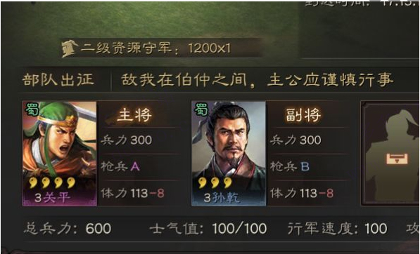 6、但是和2级资源点不同,三级资源地三名将领一共2400人,多出的一名将领使得我们无法战胜对方,系统会提示你两军伯仲之间,不要紧,我们可以合力,首先把一直给我们开路的第二梯队拉回来,然后在第一梯队进攻之后,让第二梯队也进攻,不用管系统提示你兵力差距过大,能赢。