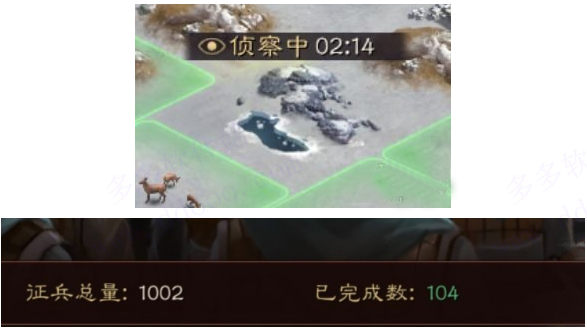 1、首先,在进入大地图开始自由开荒之后,别让你的侦察兵闲着,2级3级资源地第一天都能打,所以先让侦察兵把周围所有的2、3级资源点全侦查一圈,同时,征兵也别闲下来,可以直接拉最大,征兵是你的兵力一点点慢慢增加的类型,而不是到了时间一块给你,所以不用担心中途兵力不够。