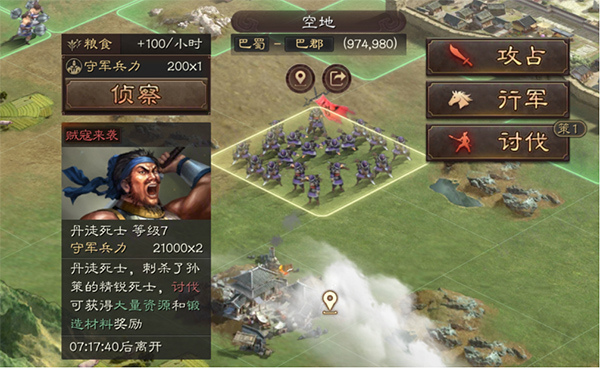2、蛮族在第一次开启时会直接刷新在野外地图,往后只会在周末才有刷新。刷新的蛮族有24小时的存在时间,时间一过将会自动消失。讨伐蛮族需要消耗部队15点体力,主公如果遇到有蛮族千万不要错过噢!