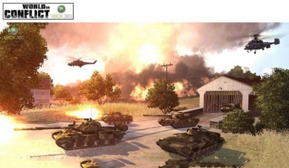 DirectX10版《世界冲突》加入软粒子技术,来模拟游戏当中的爆炸产生的粒子效果。DirectX9技术下,爆炸的粒子效果通常采用简单的2D纹理来绘制,经常会造成爆炸画面区域的画面撕裂问题。