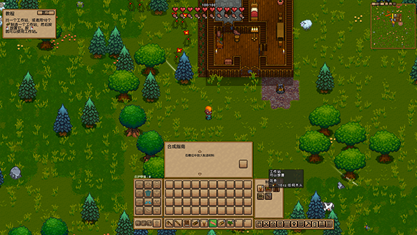 5、最后在背包内点击合成指南建造工作台就可以自由冒险了。