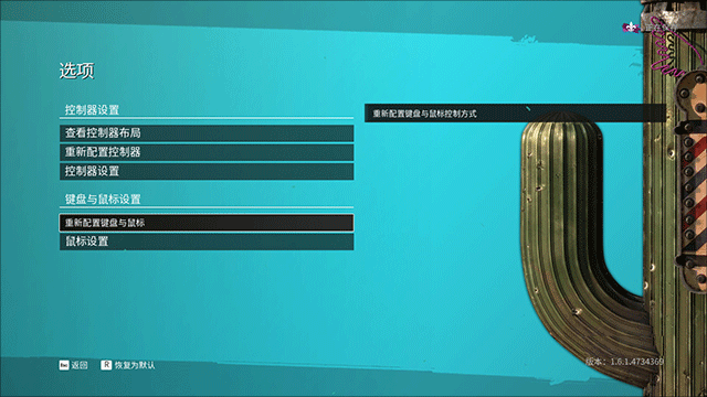 3、在控制界面的“键盘与设置”一栏中选择并点击“重新配置键盘与鼠标”的按钮选项;