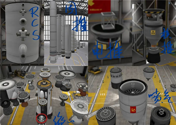 RCS引擎:包括什么“随便放”一/七型RCS喷口、RV-105、RV-1x、Vernor引擎……(Vernor引擎是唯一消耗液体燃料和氧化剂的RCS引擎)