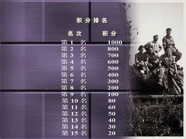 7、选择“积分排名”可以查看游戏的高分记录排行榜。