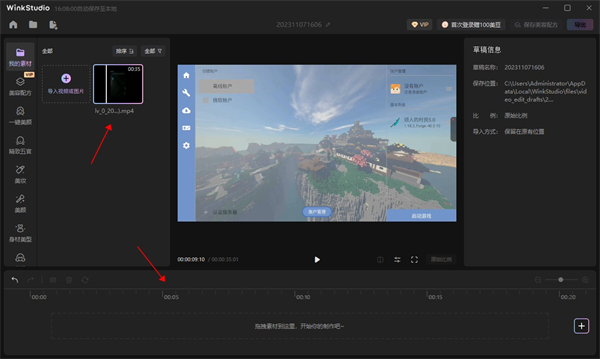3、将视频内容拖到下方开始进行创造。