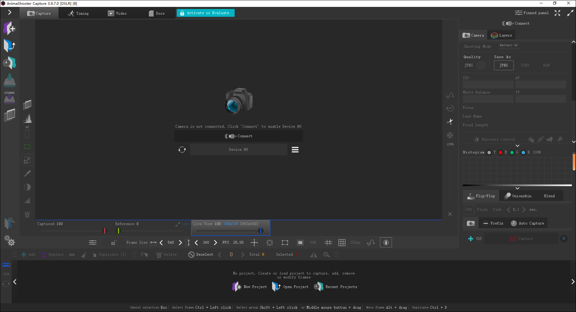 要在AnimaShooter中捕获帧或创建视频,首先要创建一个项目,创建项目,请单击此按钮。在出现的窗口中,在“名称”字段中键入项目的名称,然后单击“ 保存”。