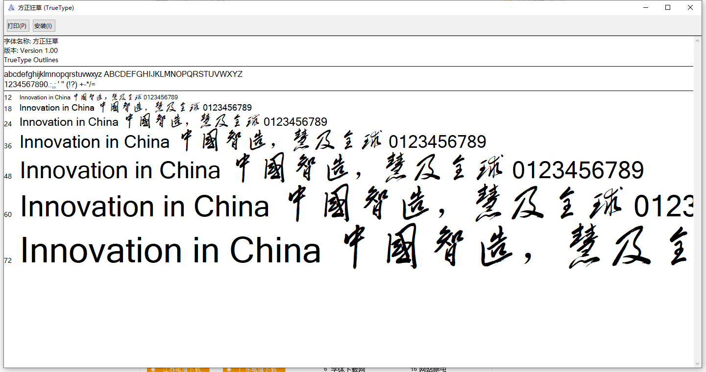 方正狂草字体是一款非常狂野的艺术字体,非常飘逸大方,广泛应用于书法,名片,广告,艺术等行业,很受大家喜爱的一种电脑字体,它由传统的草书演变而来,风格更加独特,豪放的字形看起来十分飘逸,一眼看去整个给人一种气势磅礴的感觉,十分大气,在设计中常常用到。需要的朋友们可以收藏一下本站!