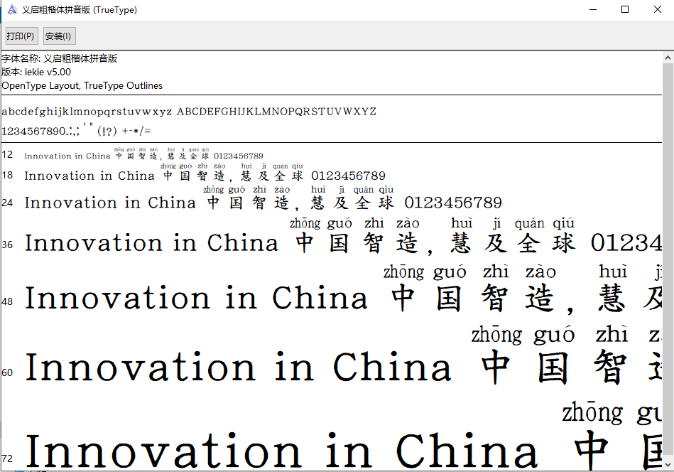 这款义启粗楷体拼音版字体真的挺酷的!它在原有的粗楷体基础上加入了拼音效果,看起来更有力量感,特别适合做标题或者品牌宣传。我之前用过类似的字体,感觉在设计签名和包装时效果特别棒。