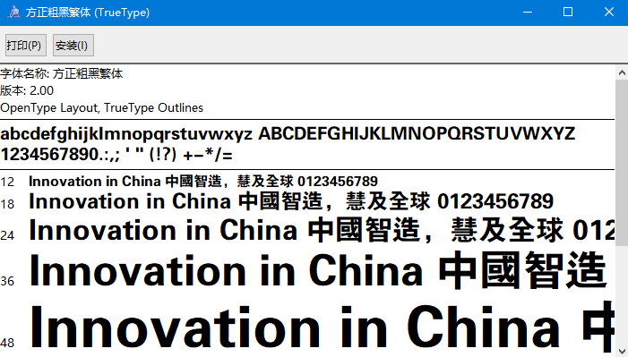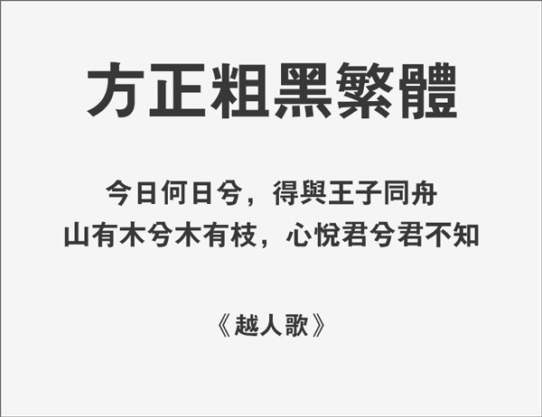 方正粗黑繁体字体是一款应用于设计方面的中文繁体汉字,该字体线条粗旷,字形端正大方,整体效果十分出众,能够适用于广告设计、名片设计、包装印刷、产品设计等应用,有喜欢的朋友可免费下载收藏。
