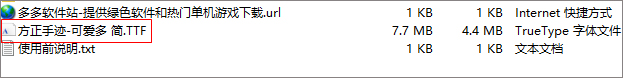 ①在本站下载安装完成之后,解压缩【方正手迹-可爱多 简.TTF】