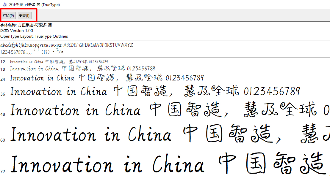 ②可以看见左上角的打印和安装,点击安装即可安装成功,有需求的还可以打印出来哦