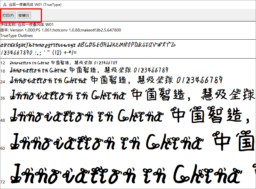 ②可以看见左上角的打印和安装,点击安装即可安装成功,有需求的还可以打印出来哦