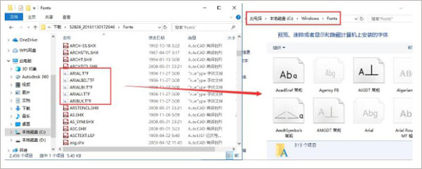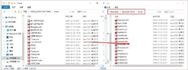 注意:如果电脑中安装了多个版本的AutoCAD软件的话,则需要在每个安装目录中都拷贝字体文件