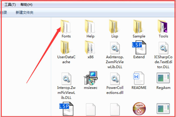 2、找到autocad软件安装路径,并搜索【fonts】文件夹,此文件夹就是CAD字体的存放位置;