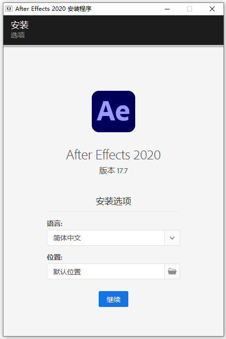 ps:这里小编带来的是ae2020中文破解版,由@vposy大神基于官方版封装,已经集成了激活补丁,安装即可激活。并且软件需要64位系统Windows 10 1903以上版本才能运行,无需断网,可以更改安装路径,可以选择简体中文语言,详细的安装教程可参考下文。