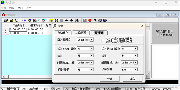 5、使用F8, F9, Enter或插入时间点按钮(区别见功能解释部分, 如果Enter键无效请修改选项菜单的快捷键设置)