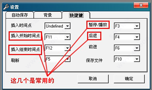 2、缺省快捷键: 暂停F3,后退F4,前进F6