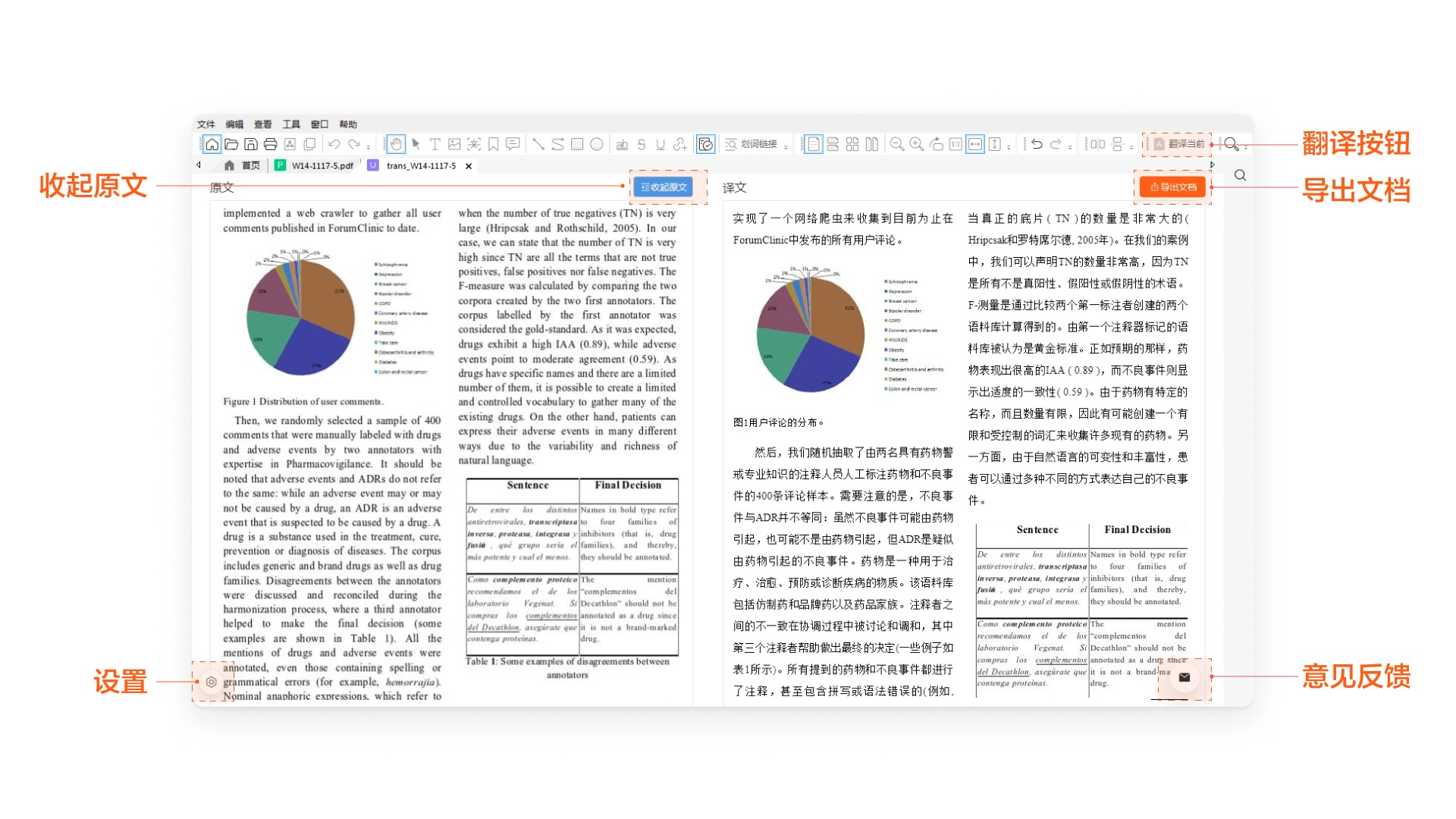 2、然后打开软件点击翻译即可将英文文档翻译成中文文档(仅支持20页以内、非扫描版的英文文档);