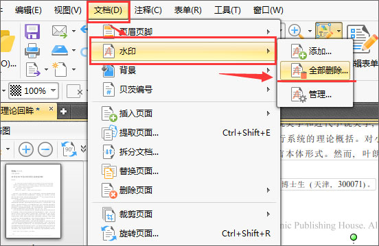 选择后,PDF文档中的全部水印将被去掉,单击保存文件,至此去水印的操作已完成。