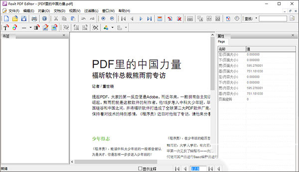福昕PDF编辑器是一款非常好用的PDF文件编辑工具,中文名称叫做福昕PDF编辑器,拥有众多实用的功能,比如支持编辑现有以及新建的PDF文件,可以轻松添加、删除页面,还能改变字体大小颜色,还能够插入bitmap格式图片等。功能非常强大,而且界面简洁,没有广告,使用起来也很简单,即使是新手也能很快上手。福昕PDF编辑器还是第一个真正意义上的PDF编辑软件,在它出现之前,根本没有任何这样的工具可以让用户直接编辑PDF文件。