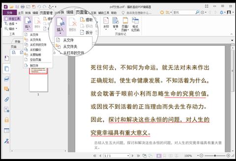 7、也可通过顶部工具栏“页面管理”的插入功能来添加需要合并的页面并排列;