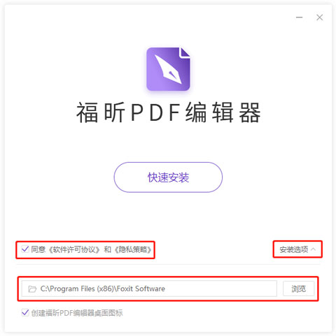 2、打开安装包,同意协议后,点击快速安装即可安装;