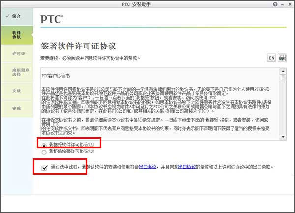 10、安装路径更改为“d:\Ptc”,应用程序用户可根据需要选择安装;