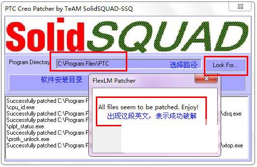 14、再双击“PTC_Creo_Patcher_SSQ.exe”开始激活,选择软件安装目录后,再点击start按纽;
