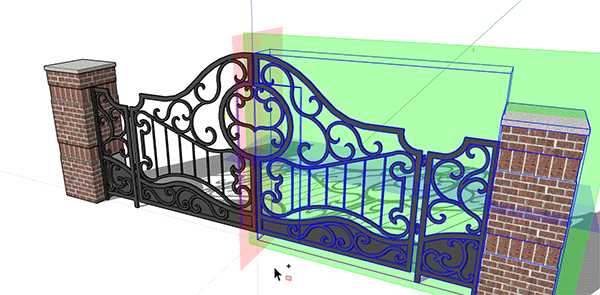 与其他几个工具一样,可以在选择几何体后激活“翻转”,或将鼠标悬停在要翻转的图元上。接合后,您将看到与模型方向对应的三个平面。将鼠标悬停在一个平面上,然后单击一次以围绕该平面“翻转”。您甚至可以使用箭头键-向左箭头表示绿色,向右箭头表示红色,向上箭头表示蓝色。